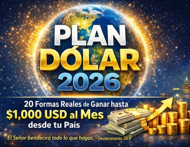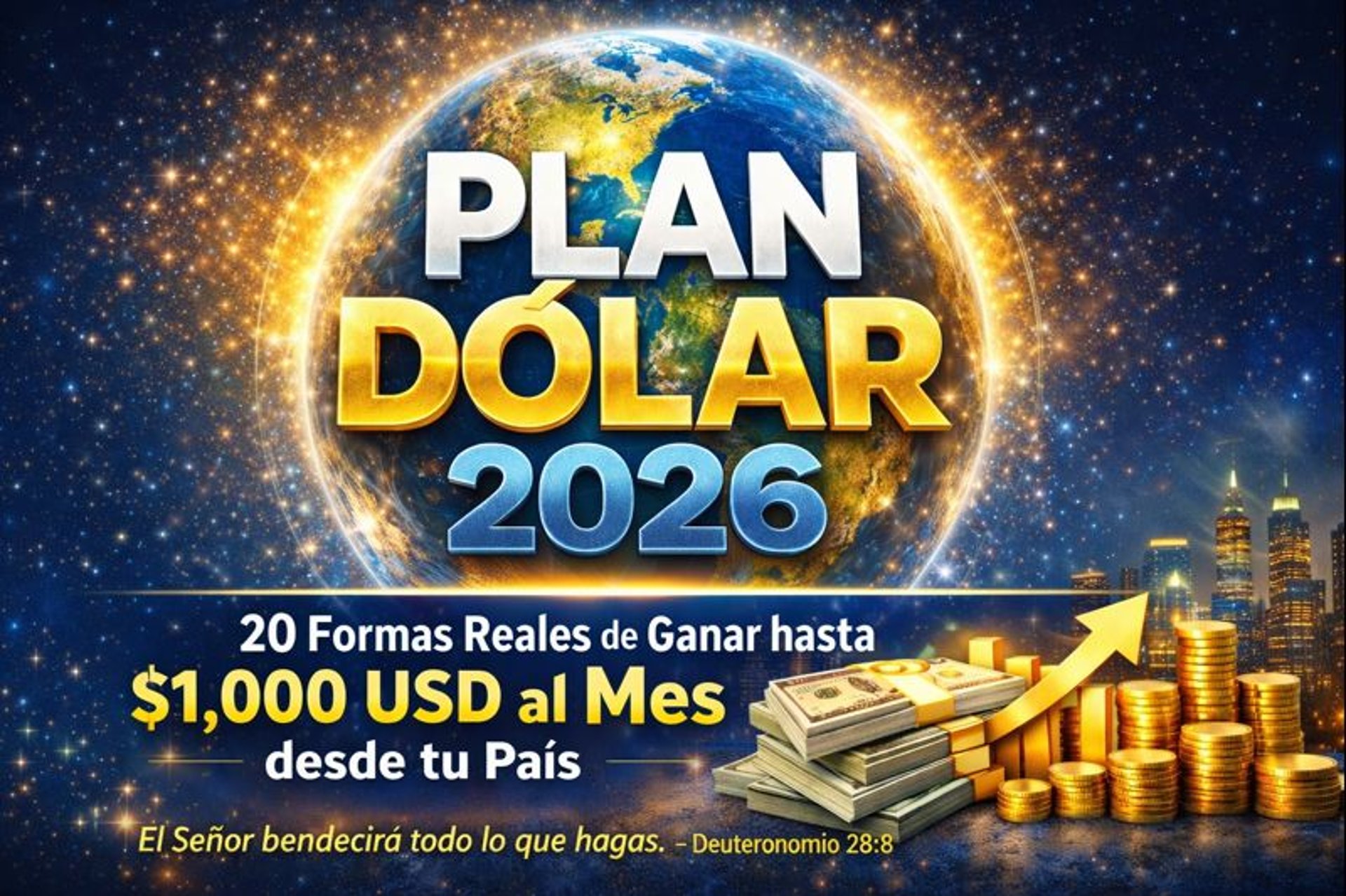Es un guía práctico con 20 formas reales de generar ingresos en dólares por internet, incluso si empiezas desde cero.